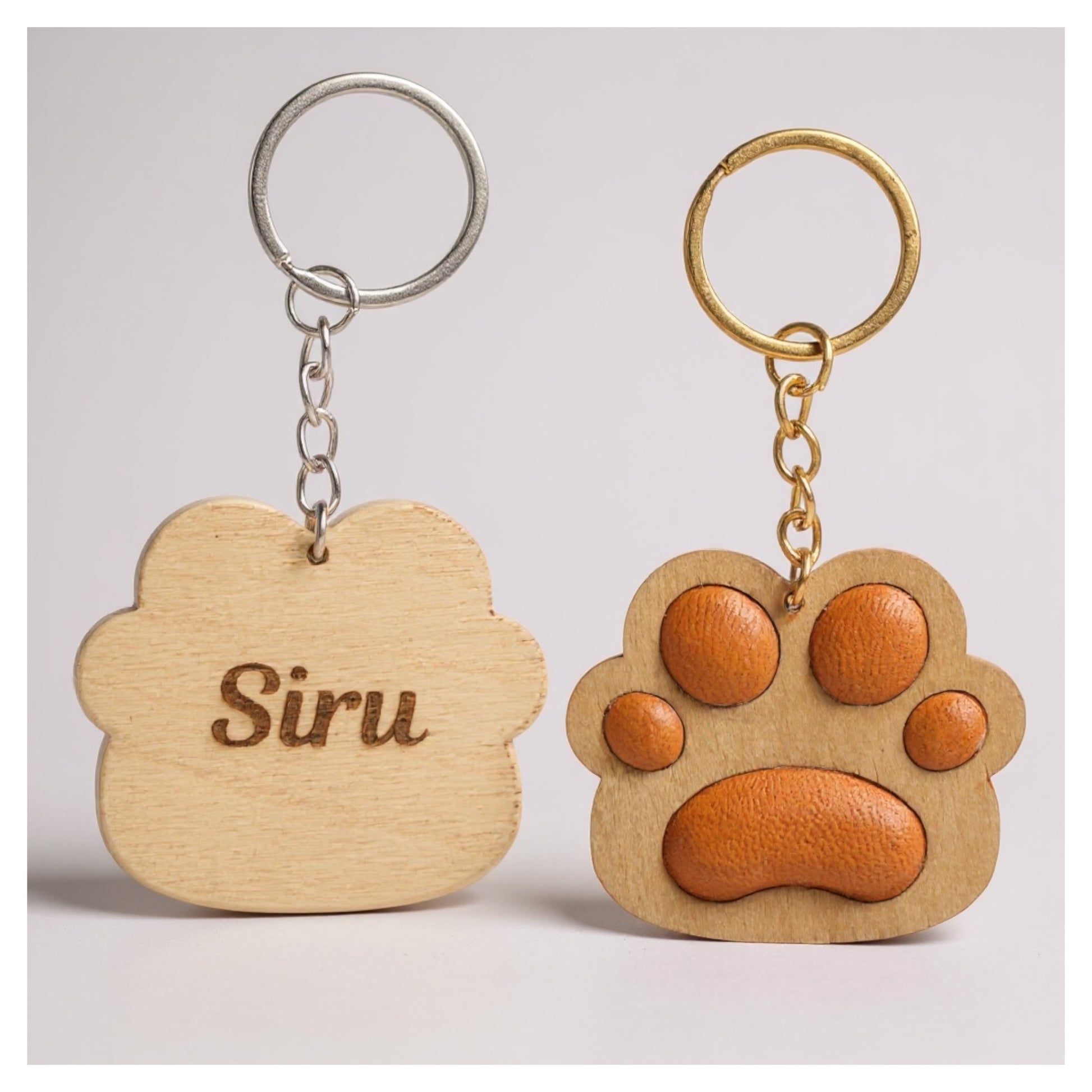 Anna rakkaalle koirallesi tassunjälki, joka kulkee aina mukanasi. Tämä käsintehty koira-tassu avaimenperä on valmistettu suomalaisesta sertifioidusta koivuvanerista ja viimeistelty pehmeillä nahka-anturilla. Taustapuolelle voidaan kaivertaa kissasi nimi tai pieni viesti, joka tekee tuotteesta täysin uniikin.